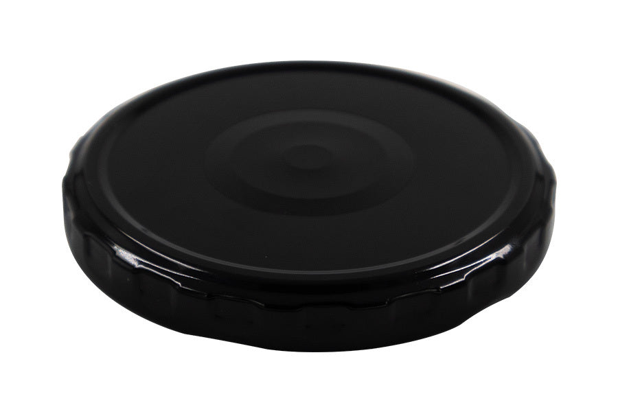 82 mm Black Fluted Metal Twist / Lug Button Top Plastisol Lined Cap